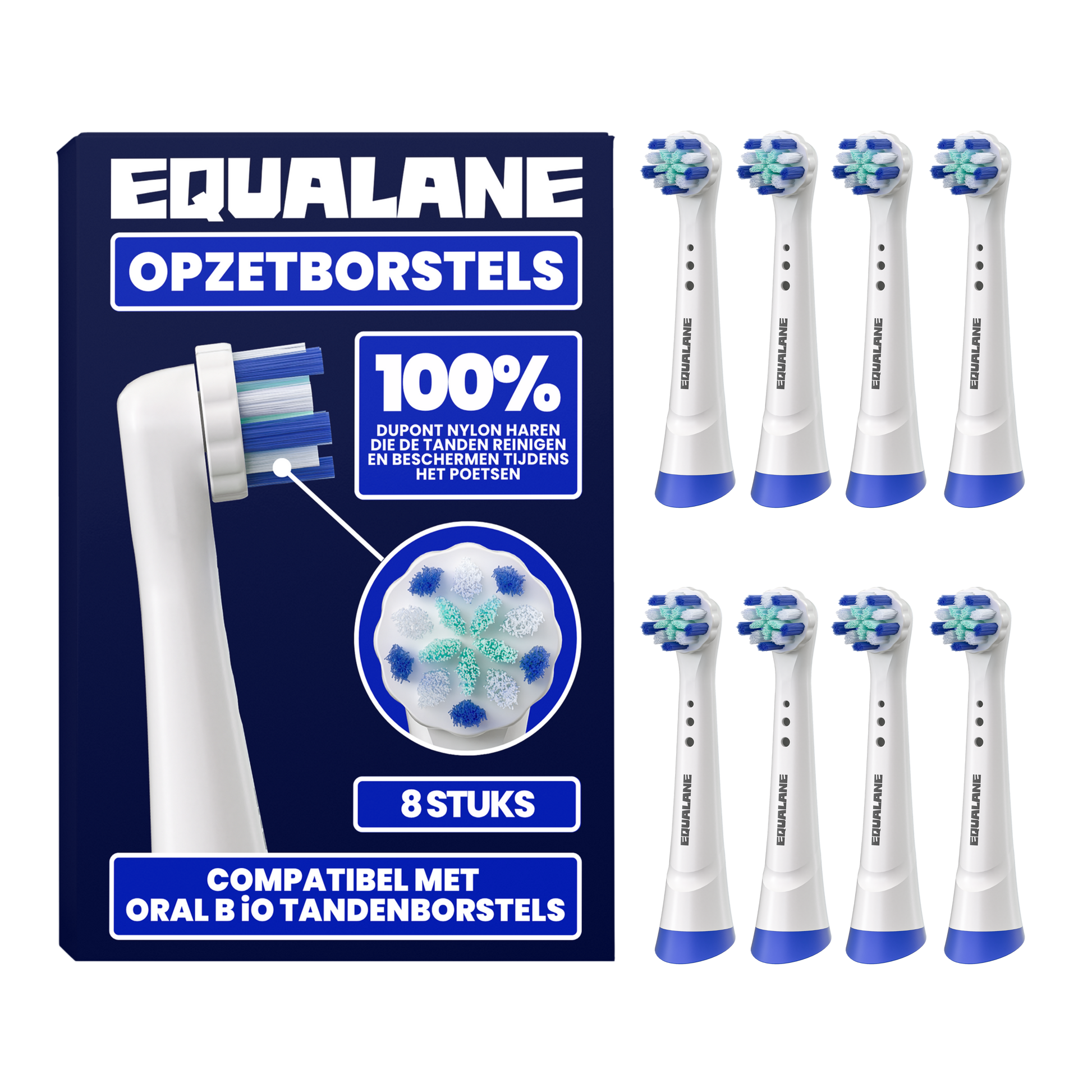 Zeg vaarwel tegen tandplak en hallo tegen een stralende glimlach! Met de opzetborstels van EQUALANE, speciaal ontworpen om perfect te passen op elektrische tandenborstels van Oral-B iO, geef je jouw tanden de poetsbeurt die ze verdienen. Dankzij de hoogwaardige dupont nylon borstelharen en slimme vormgeving poets je moeiteloos tandplak weg en maak je een einde aan de strijd tegen hardnekkige tandplak.