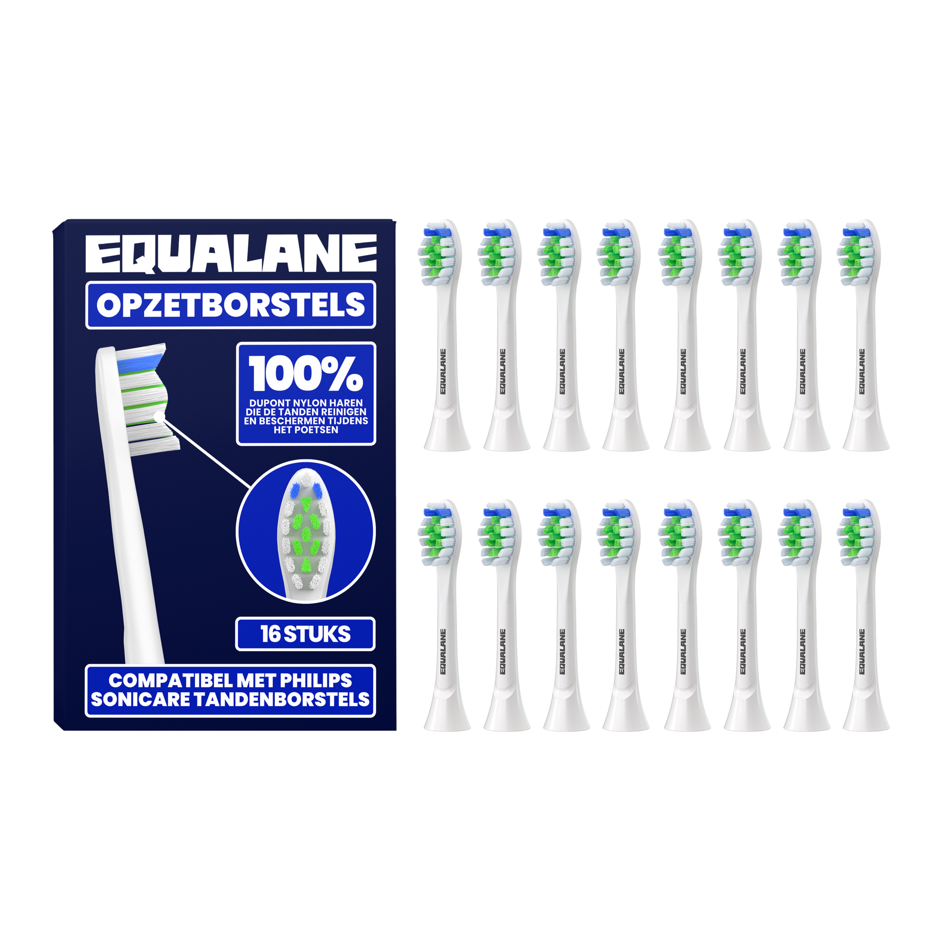 Zeg vaarwel tegen tandplak en hallo tegen een stralende glimlach! Met de opzetborstels van EQUALANE, speciaal ontworpen om perfect te passen op elektrische tandenborstels van Philips Sonicare, geef je jouw tanden de aandacht die ze verdienen. Dankzij de hoogwaardige borstelharen en slimme vormgeving poets je moeiteloos tandplak weg en maak je een einde aan de strijd tegen gaatjes.